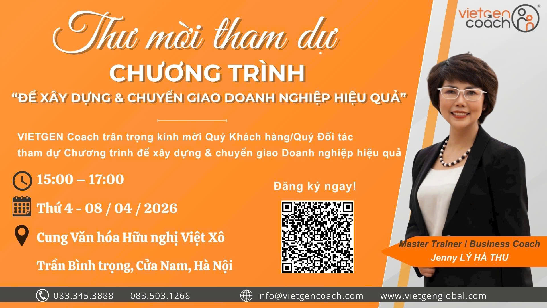 📌 Anh/Chị quét QR trong ảnh, hoặc truy cập tại đây để đăng ký chương trình nhé. VIETGEN Coach rất hi vọng được chia sẻ những góc nhìn, những phương pháp đơn giản nhất, nhanh nhất và dễ dàng nhất, xứng đáng với thời gian mà anh chị đã đầu tư!